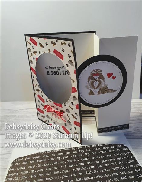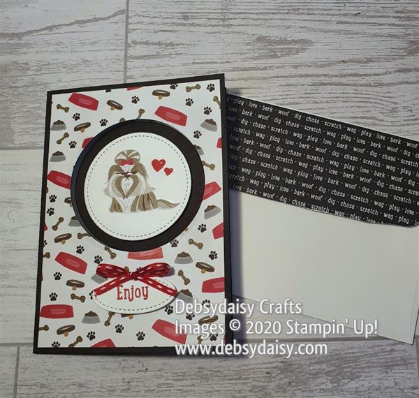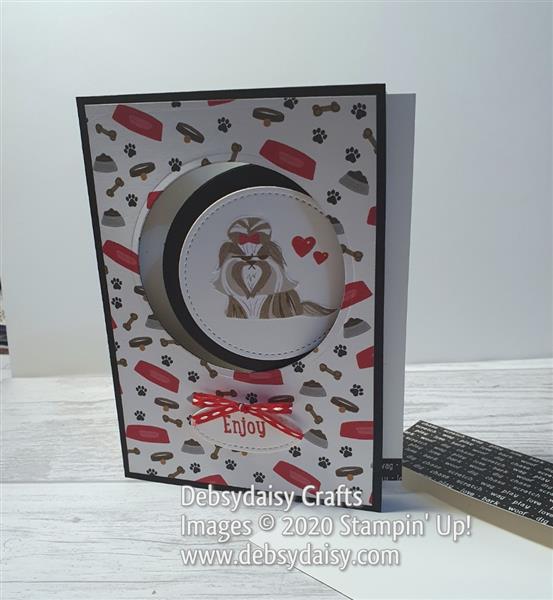 Today I am bringing you a card made using the Playful Pets Suite of products. This is a really cute suite featuring a variety of cats and dogs in the style of “Lady and the Tramp” illustrations. As soon as I saw the Shih Tzu on the Designer Series Paper, I knew I had to get it. For anyone who doesn’t know, I have a Shih Tzu Fur Baby called Saffie. She is now 18 months old and long haired.