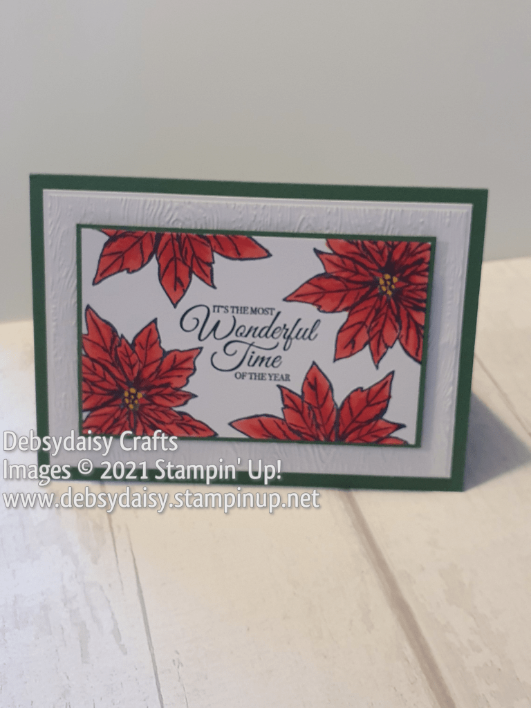 Welcome back to my Simple Stamping Sunday. This week I bring you a very simple but effective card using the Poinsettia Petals stamp set. This set can be found in the current Stampin’ Up! Catalogue (2021/22) and was carried over from last year.